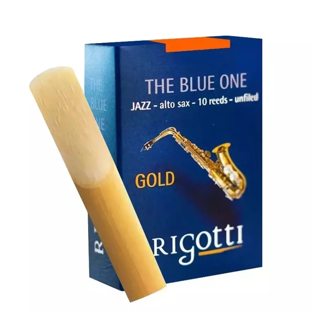 As palhetas Rigotti Gold - The Blue One, no modelo 3.5 para saxofone alto, são a escolha perfeita para músicos que buscam um som com timbre brilhante, rico e com maior projeção. Fabricadas na França com a cana Arundo Donax, essas palhetas são desenvolvidas para um corte especial que garante uma resposta imediata em todas as regiões.